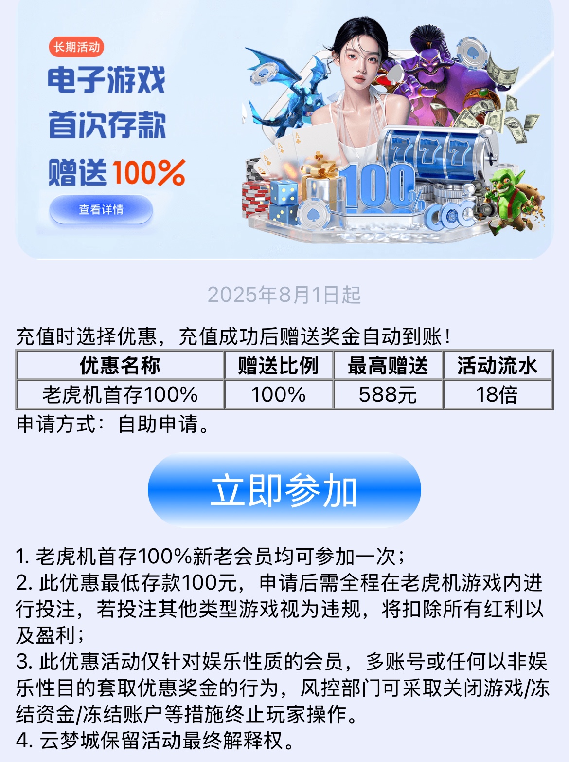 【云梦城】送15⚜️存送100%⚜️常驻888