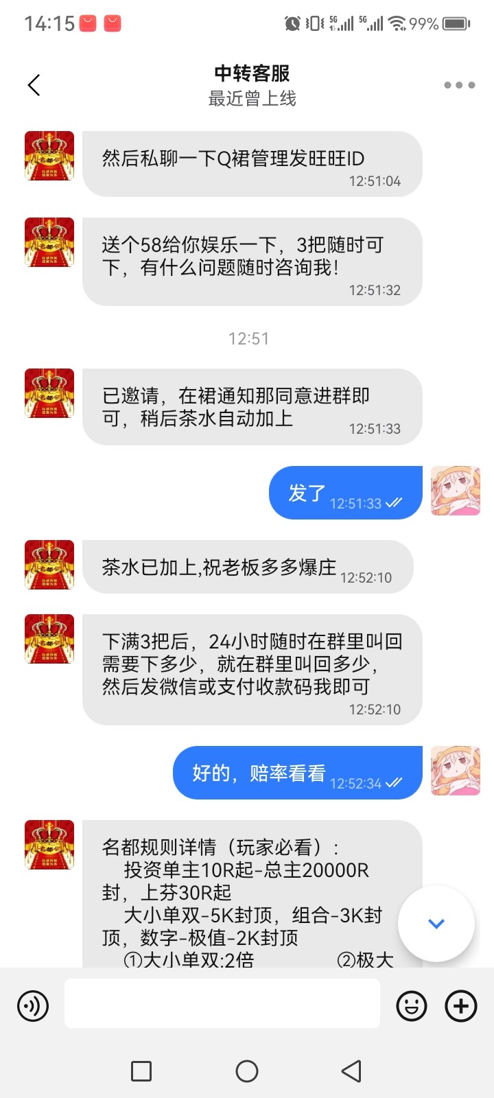 加qq群再加旺旺客服,送58玩3把可以提现,白嫖成功!