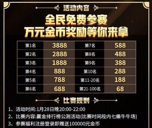 【大发互娱】送10万分体验免费每日打榜,晚上20点一22点打比赛,前100名有奖金68一3888白嫖,开服自动到银行里,打满流水可提现